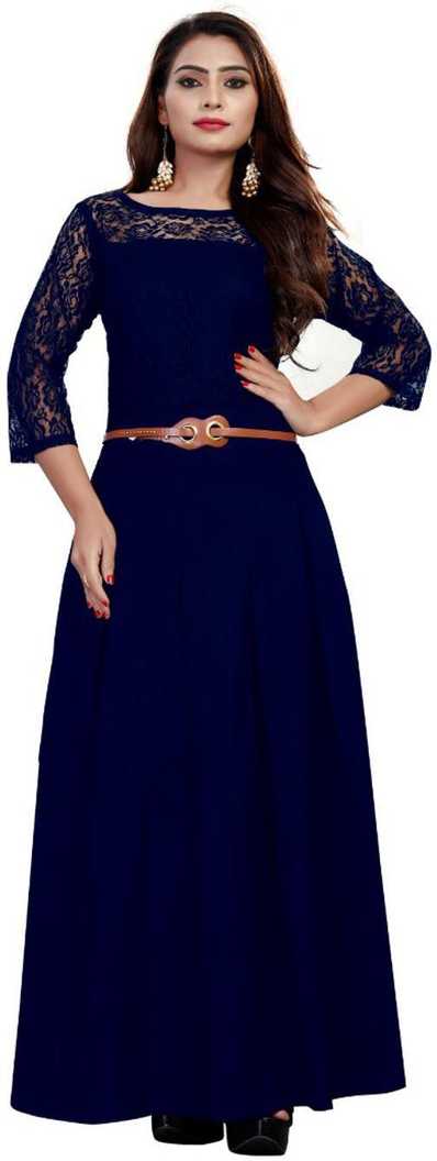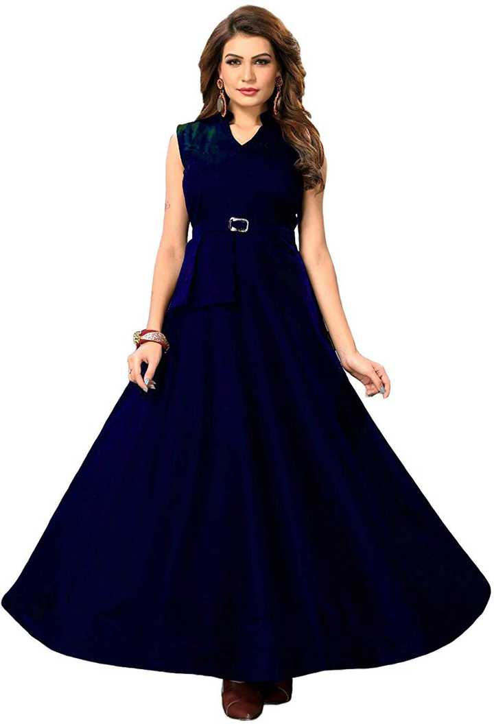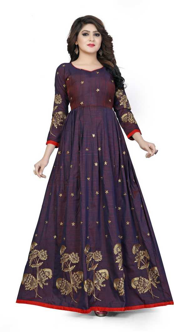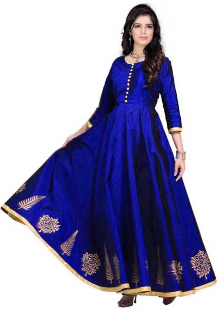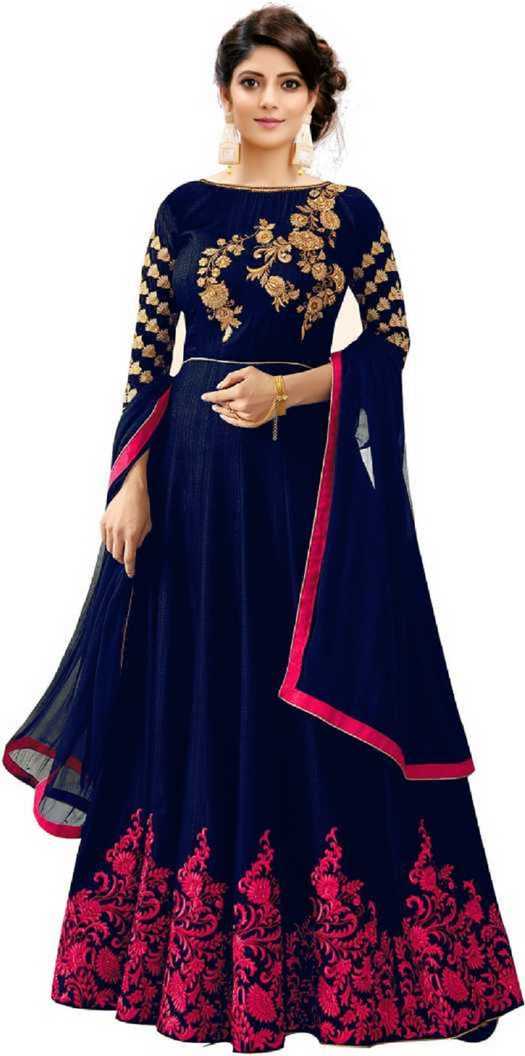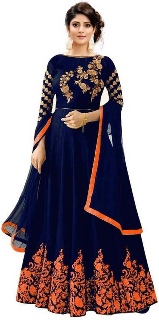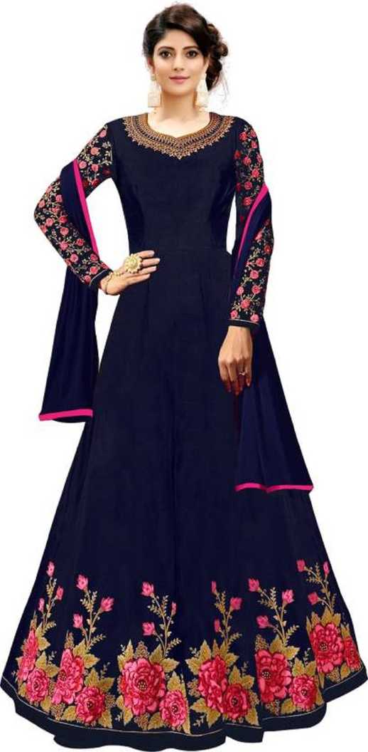 Embroidered Fentam Silk Anarkali Gown (Dark Blue)