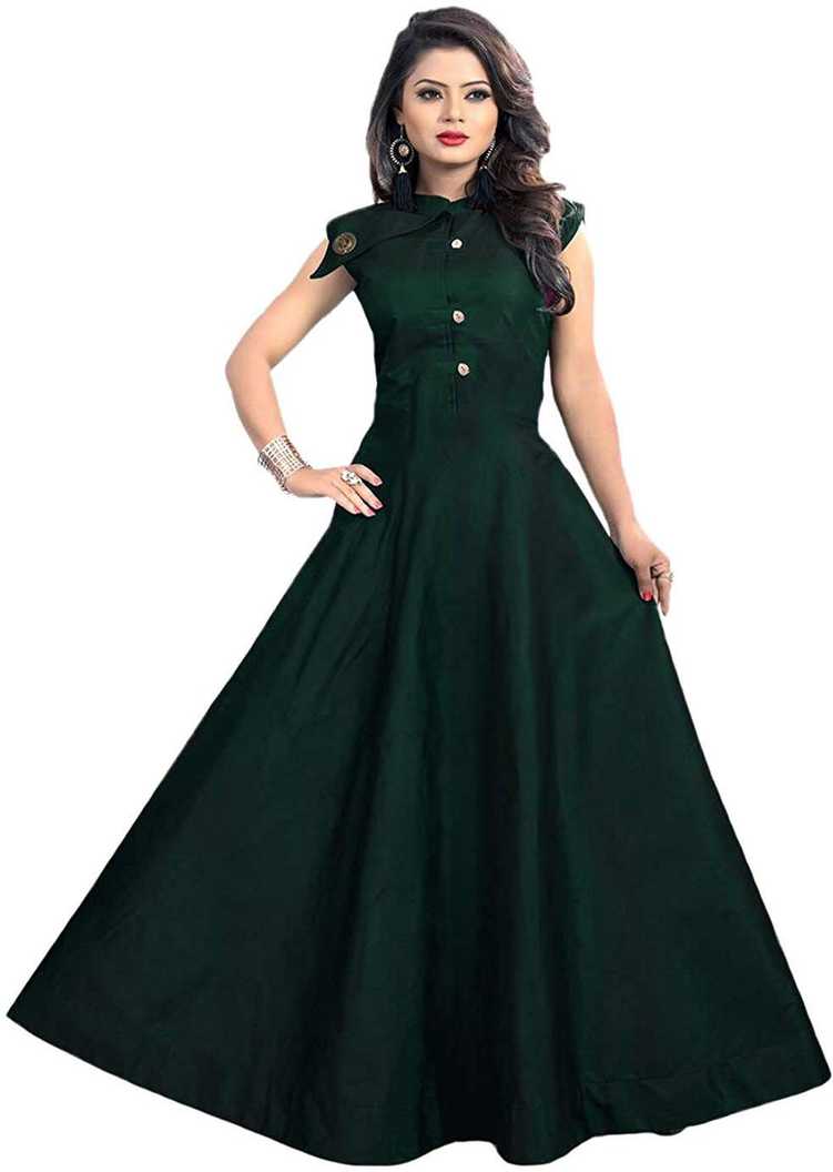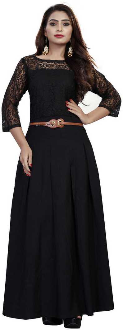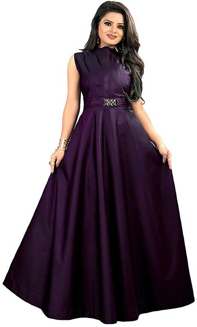 Checkered, Printed, Polka Print Poly Crepe Flared Gown (Maroon)