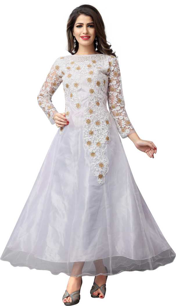 Embroidered Satin Banglori Anarkali Gown (Multicolor)