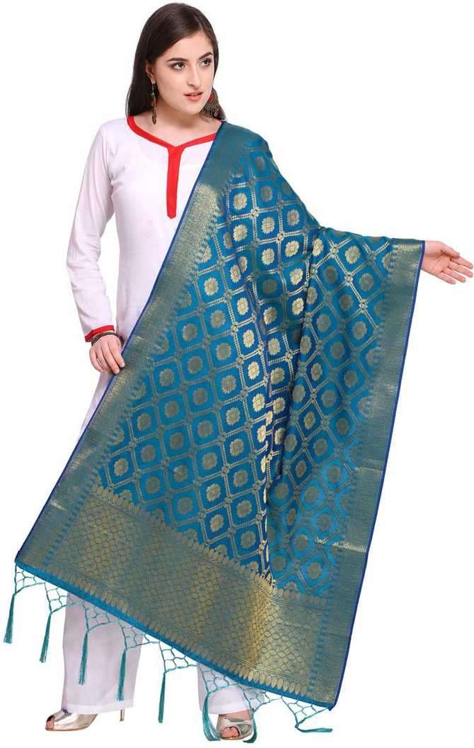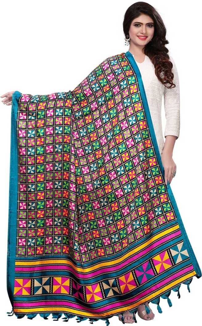 Art Silk Printed Blue, Multicolor Women Dupatta