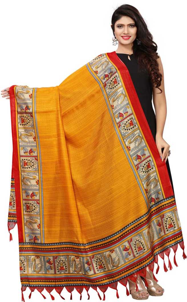 Art Silk Printed Yellow, Red, Beige Women Dupatta
