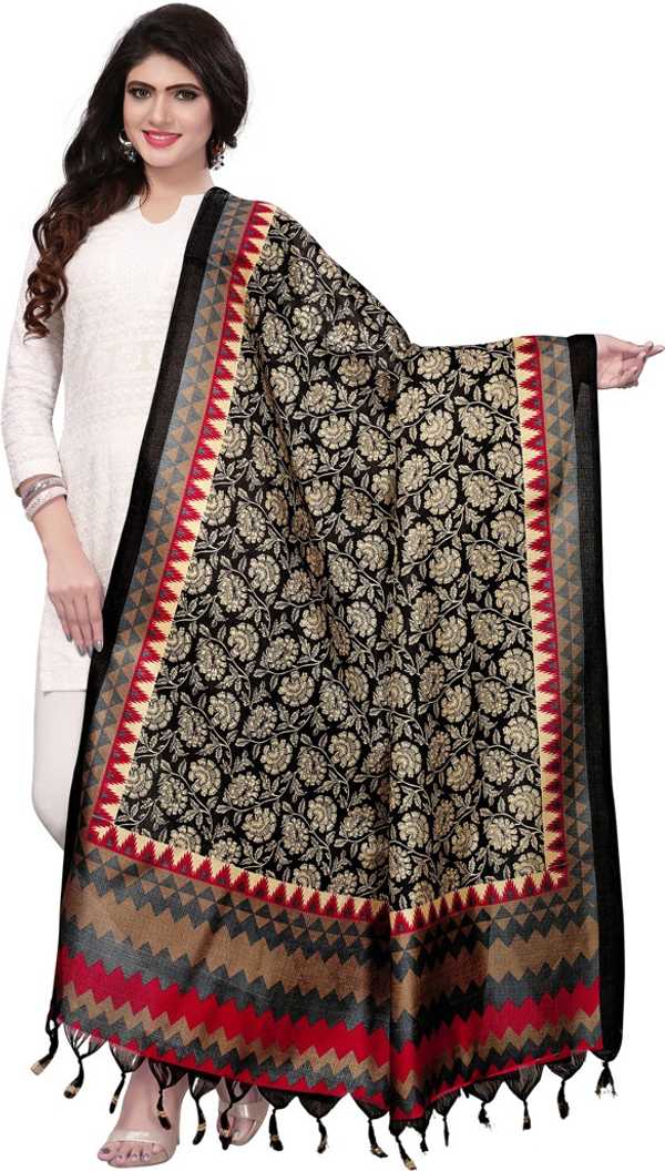 Art Silk Printed Black, Red, Multicolor Women Dupatta