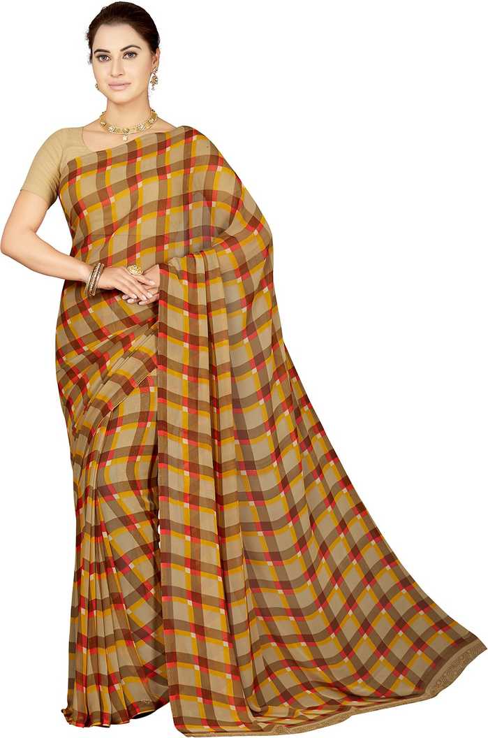 Checkered Chettinadu Beige Synthetic Georgette Saree (Beige)