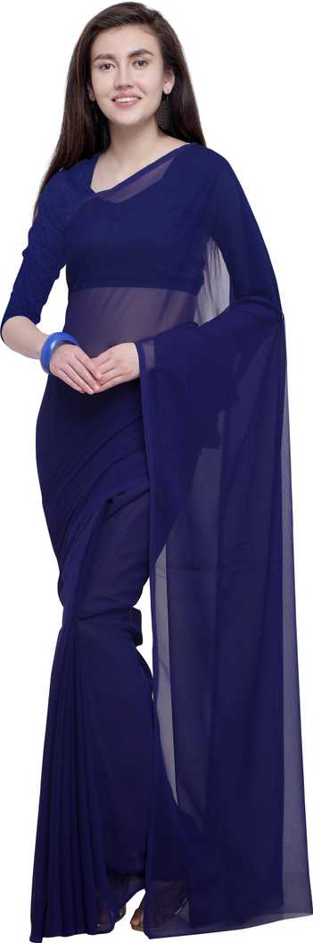 Solid, Plain Bollywood Dark Blue Georgette Saree (Dark Blue)