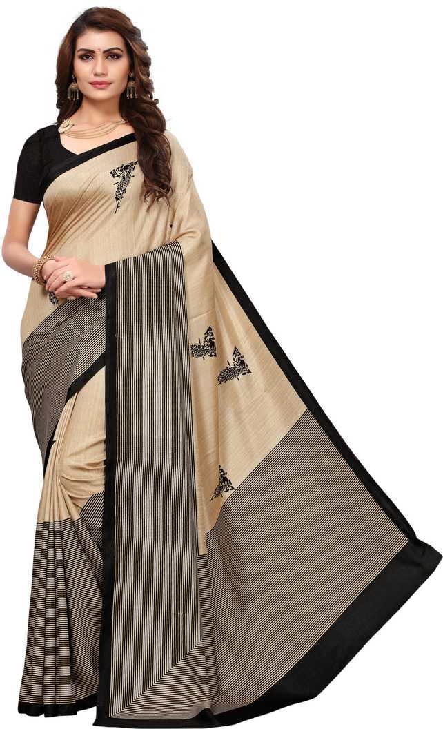Floral Print Daily Wear Poly Georgette Saree (Black)
