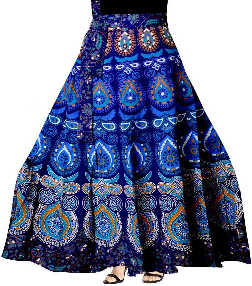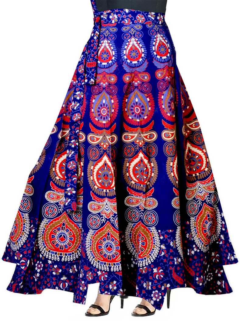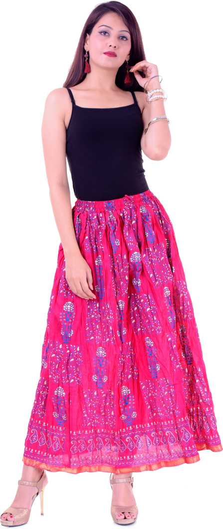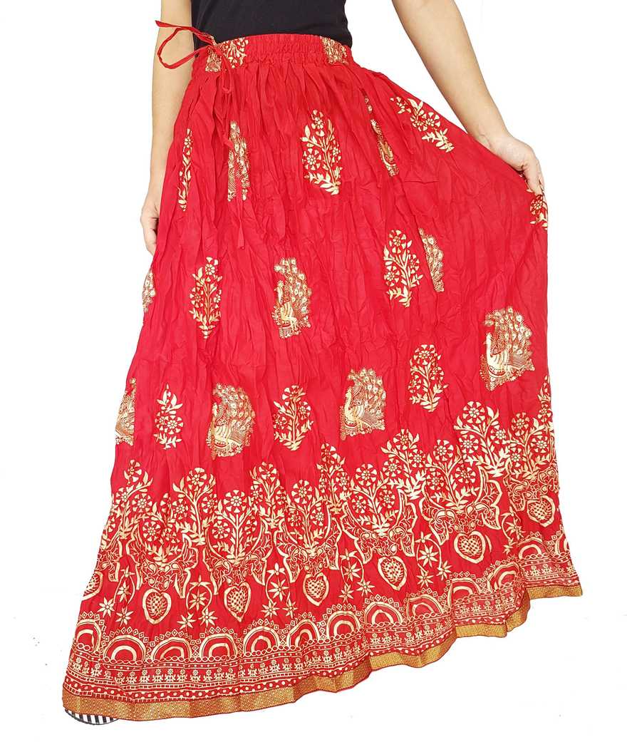Women Floral Print, Embellished, Printed Flared Red Skirt