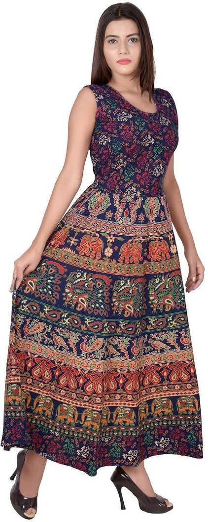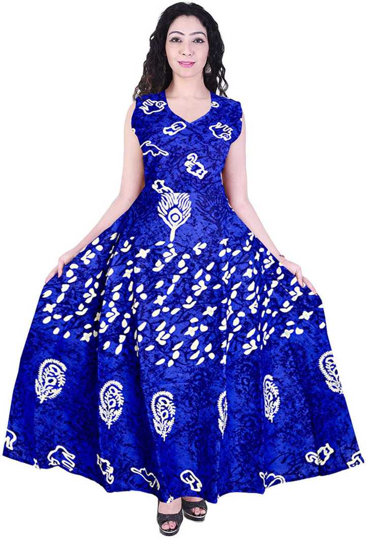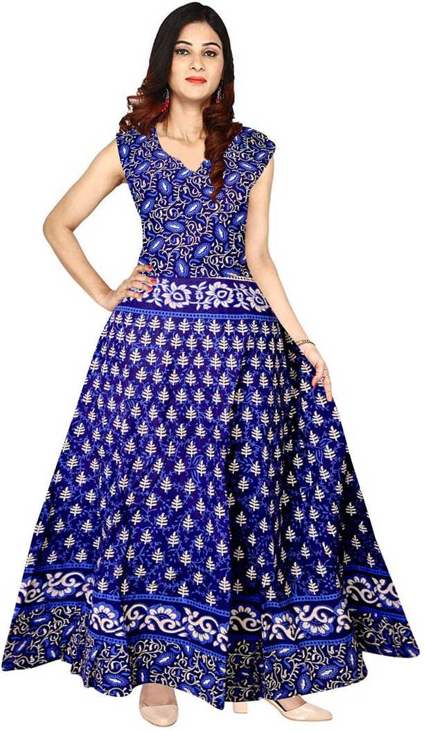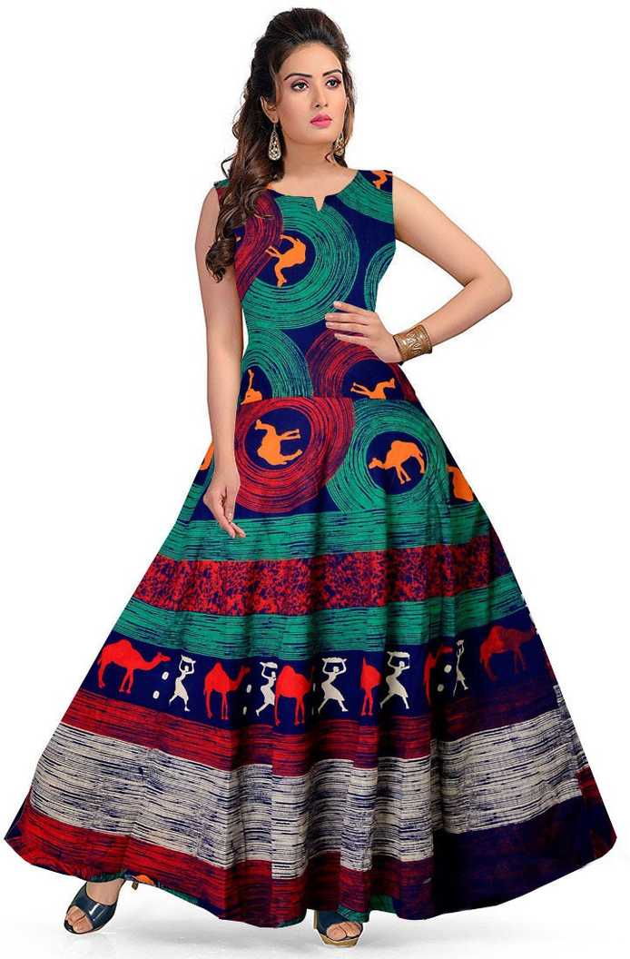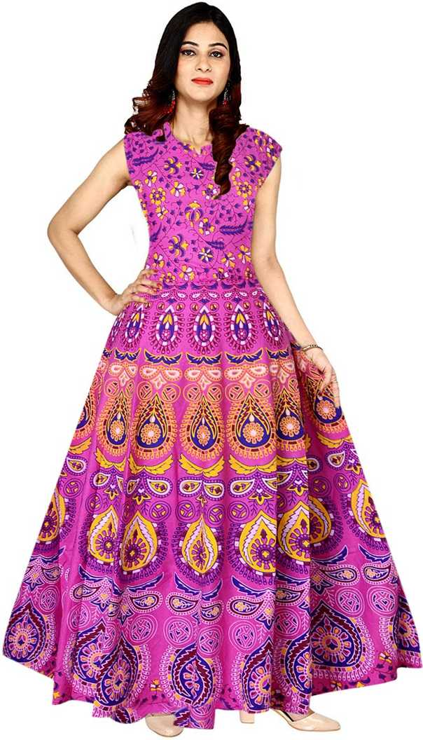 Printed Cotton Blend Anarkali Gown (Multicolor)