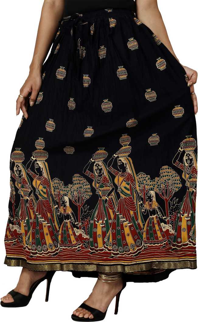 Women Floral Print, Printed, Solid Flared Black, Gold Skirt