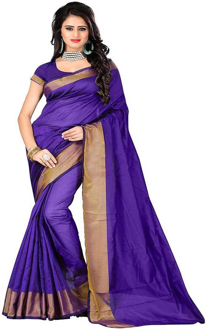 Solid Chanderi Cotton Blend Saree (Purple)
