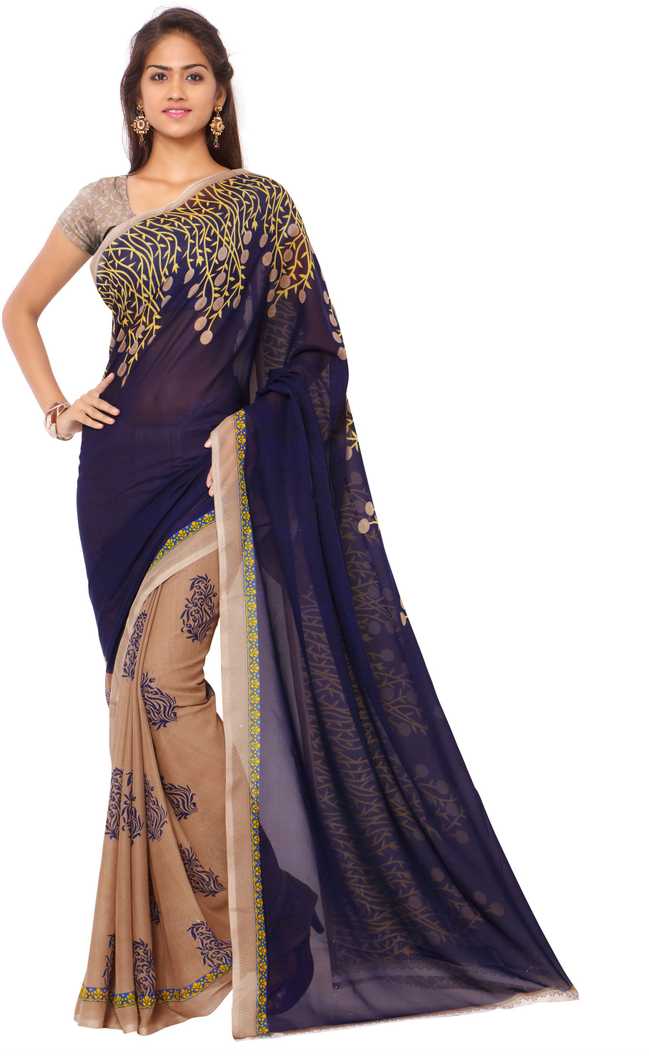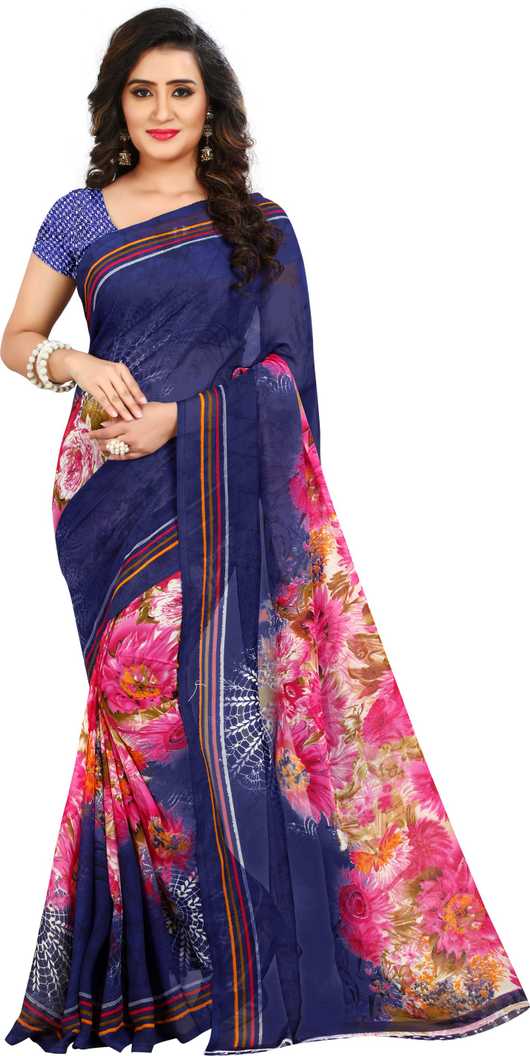 Printed Daily Wear Georgette Saree (Blue)