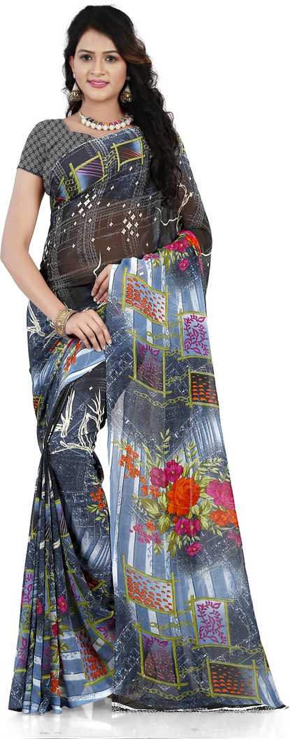 Floral Print Daily Wear Poly Georgette Saree (Multicolor)