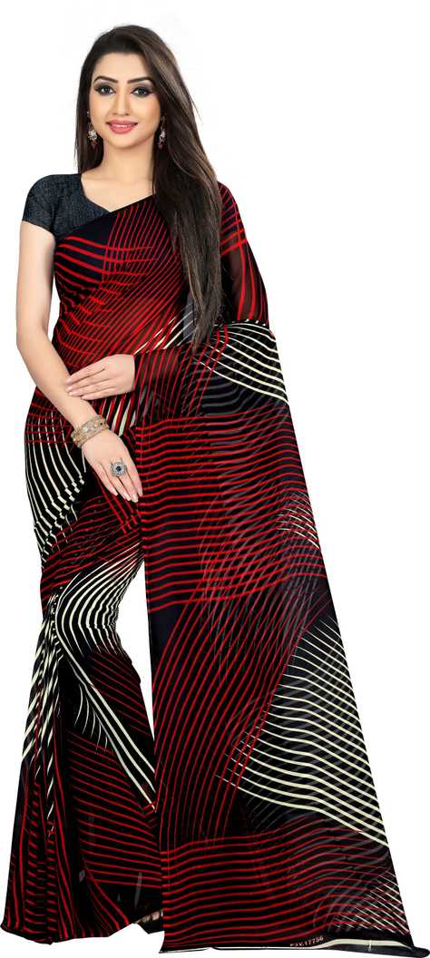 Striped Daily Wear Poly Georgette Saree (Red)