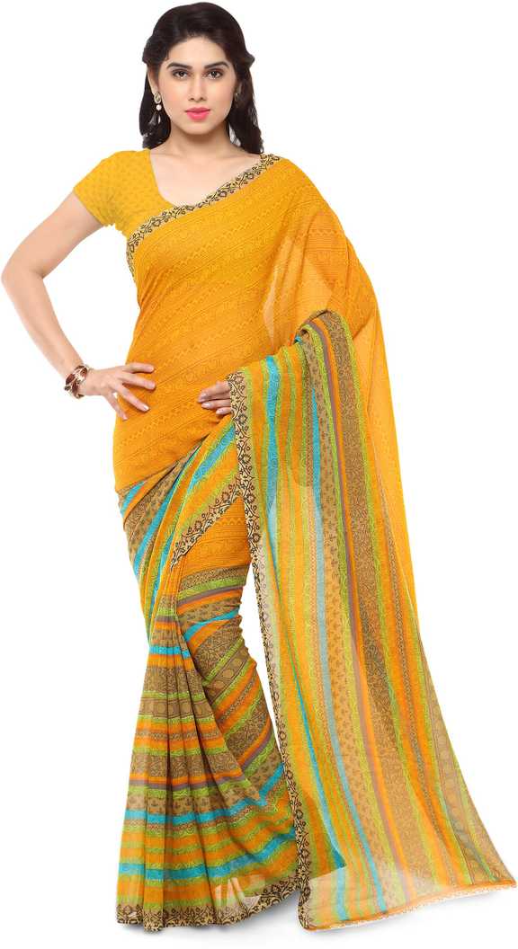 Striped Daily Wear Poly Georgette Saree (Yellow)