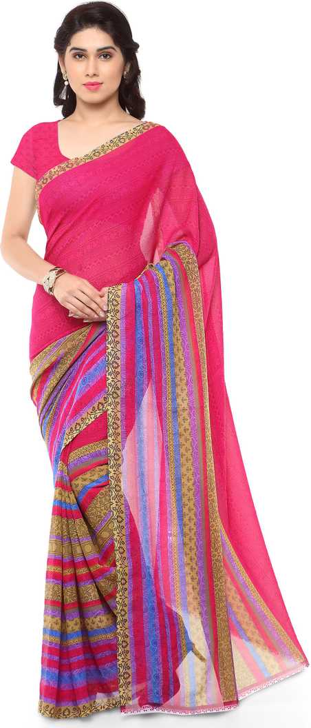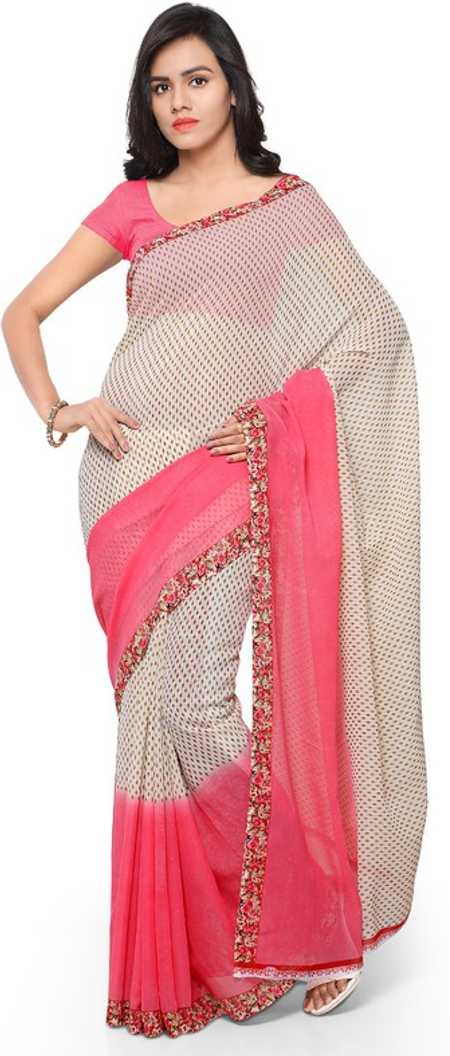 Printed Daily Wear Poly Georgette Saree (Pink)