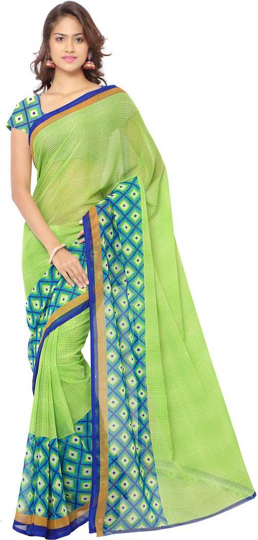 Printed Daily Wear Poly Georgette Saree (Green)