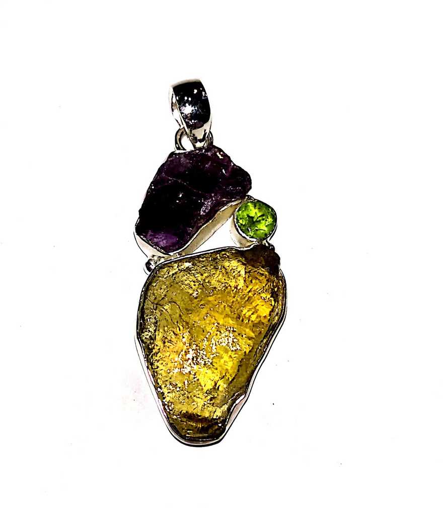 925 pure silver pendant studded with yellow rough of golden quartz gemstone...