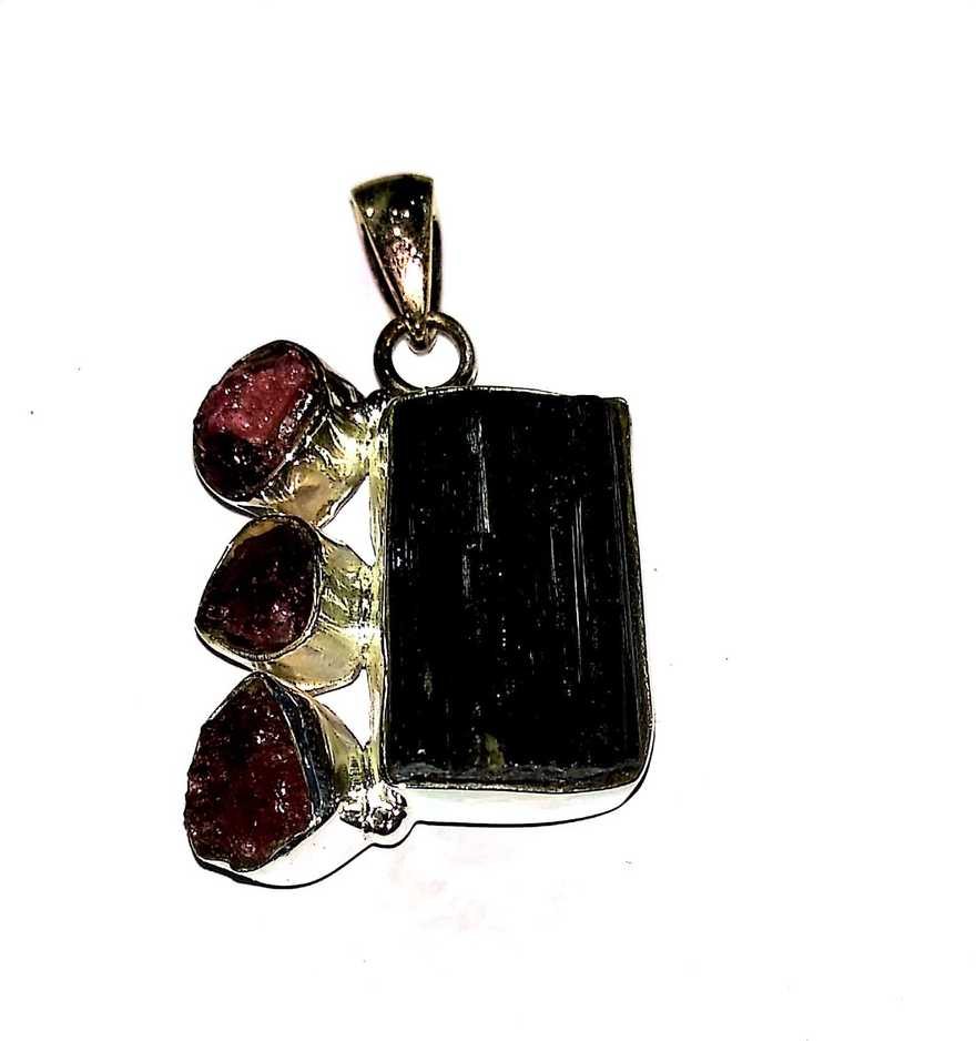 925 pure silver pendant studded with black tourmaline gemstone for girls wo...