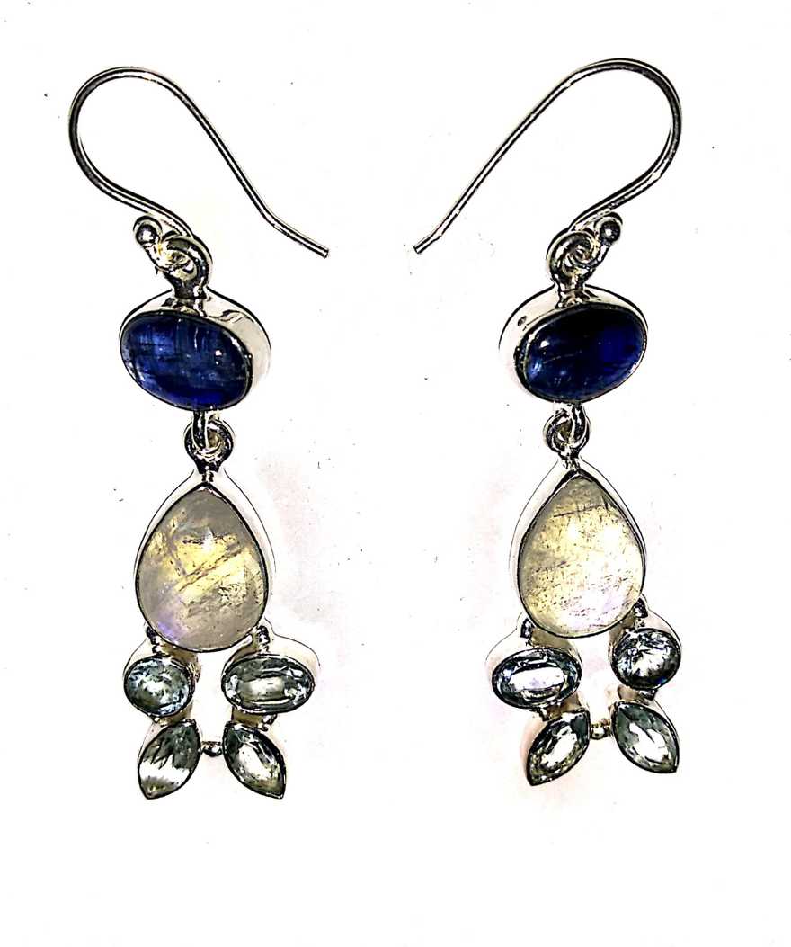 pure silver earrings studded with blue topaz & moonstone gemstone for girls...