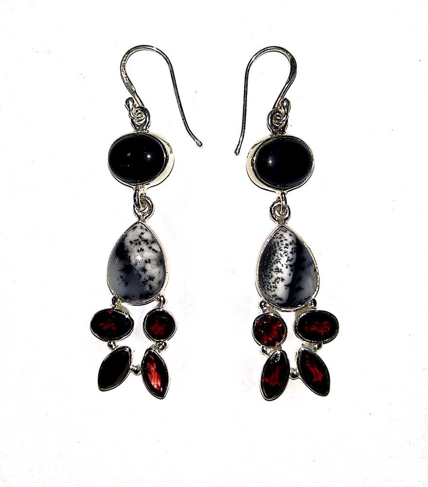 pure silver earrings studded with jasper black onyx & garnet gemstone for g...