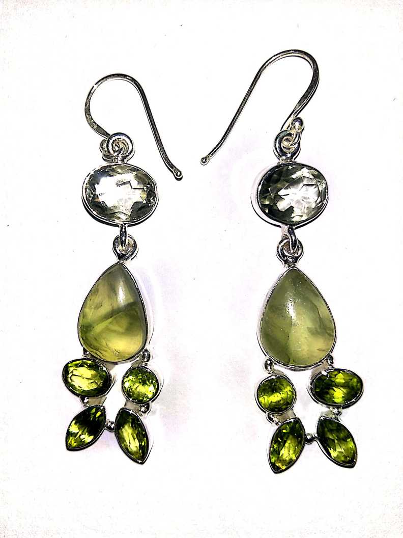 pure silver earrings studded with green amethyst prehnite & peridot gemston...
