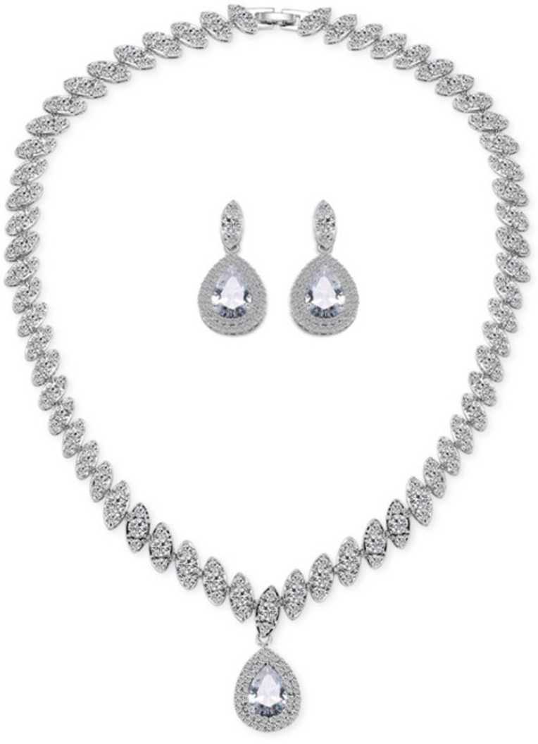 Stylish pear shape pure 925 silver With Chain for Women's Gold-plated Cubic...