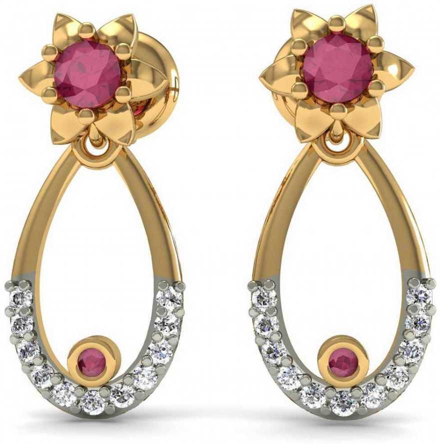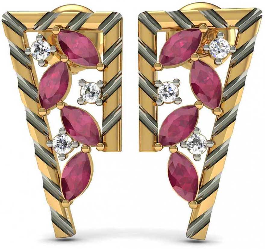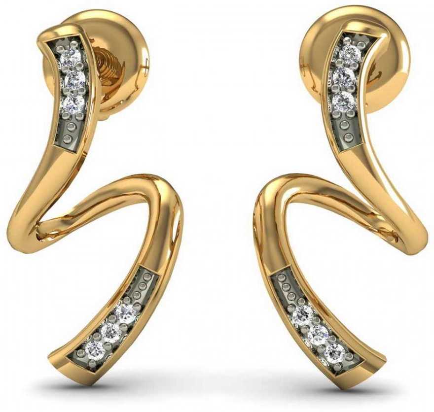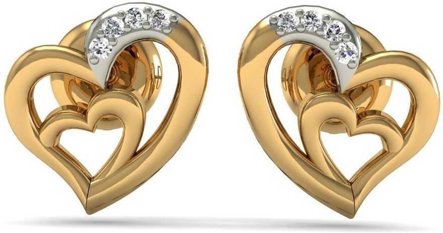 Kataria Jewellers Ethnic Love Designer Yellow Gold 14kt Diamond Stud Earrin...