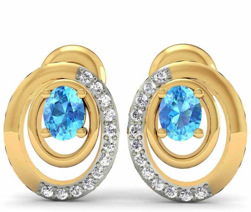 Kataria Jewellers The Thilo BIS Hallmarked Yellow Gold 14kt Diamond Stud Ea...