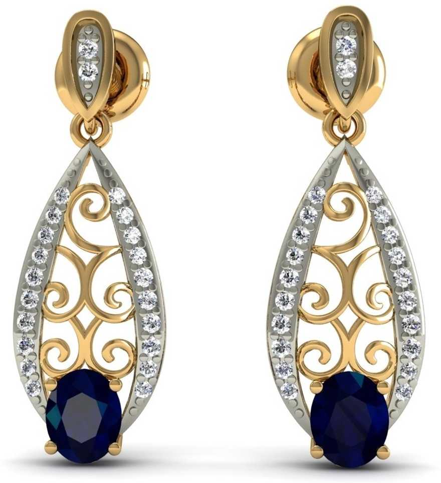 R S Jewels Creative Designs Yellow Gold 18kt Diamond, Sapphire Drop Earring