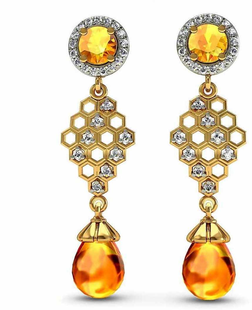 Rasav Jewels EARRING 1502DCD Yellow Gold 18kt Citrine, Diamond Drop Earring