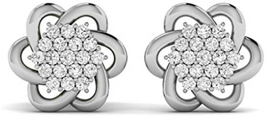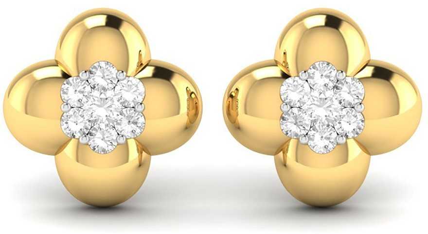 Kataria Jewellers Cute Floral Designer Yellow Gold 14kt Diamond Stud Earrin...