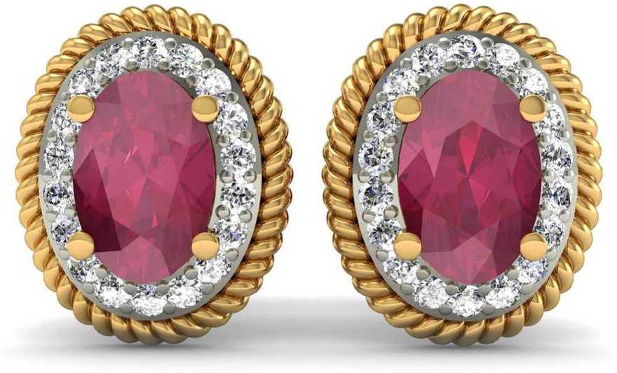 Rasav Jewels EARRING 1441SIN Yellow Gold 18kt Diamond, Ruby Stud Earring