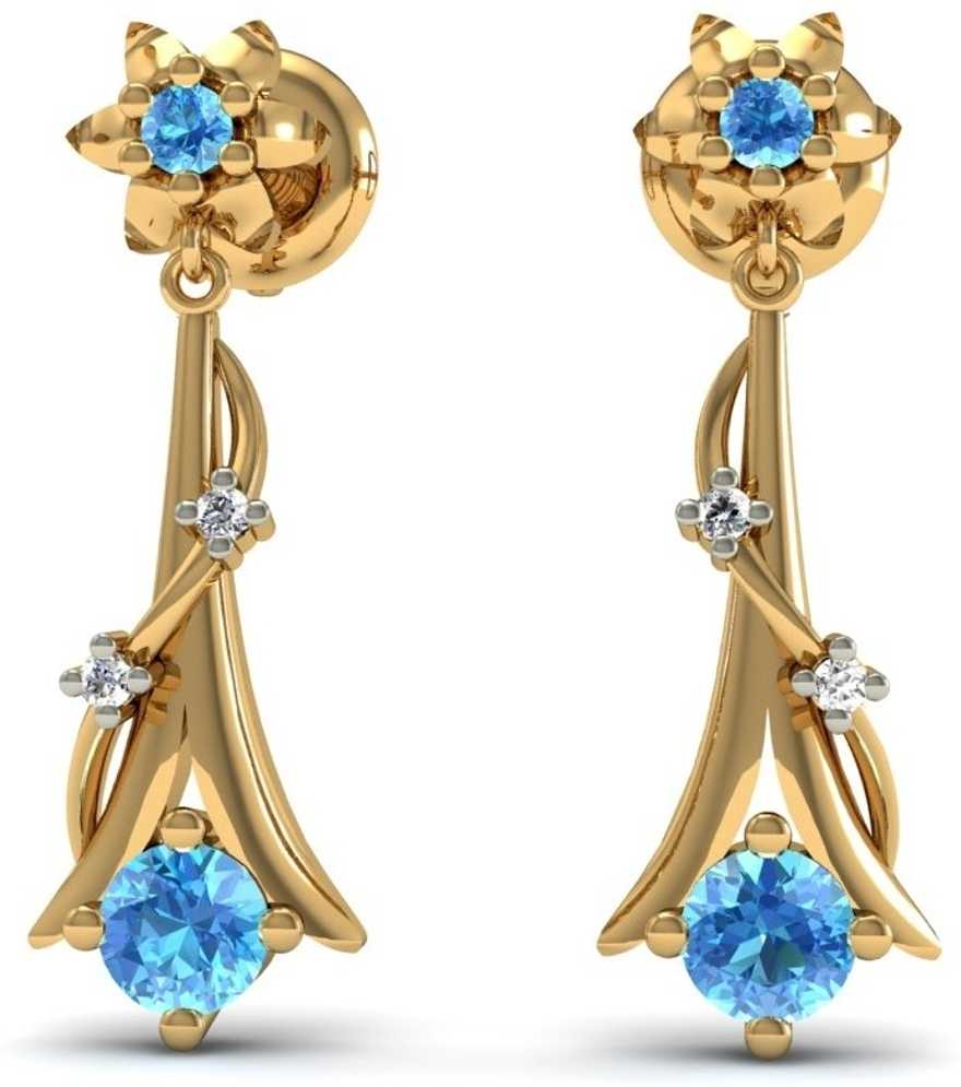 Kataria Jewellers Cute Aquamarine Yellow Gold 14kt Drop Earring