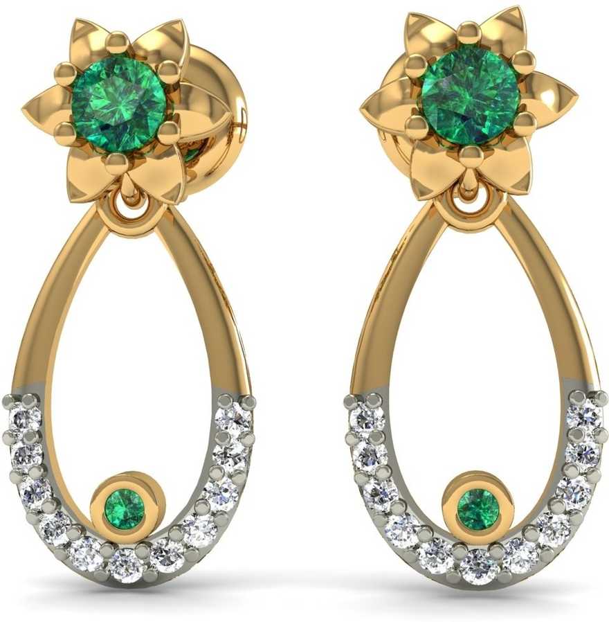 R S Jewels Creative Designs Yellow Gold 18kt Emerald, Diamond Drop Earring