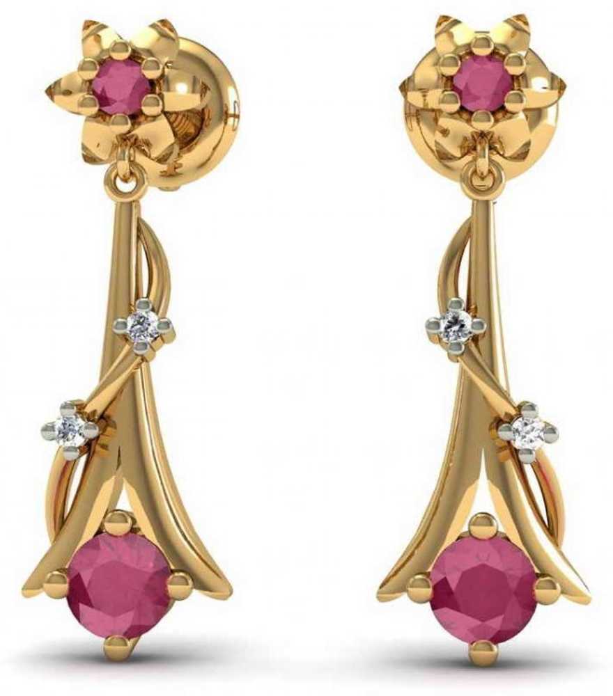 Rasav Jewels 1441DEQ Yellow Gold 18kt Diamond, Ruby Drop Earring