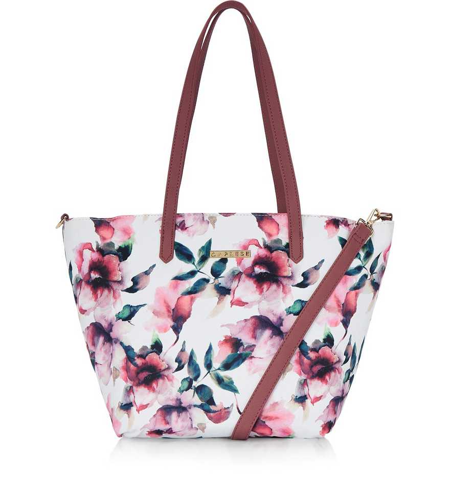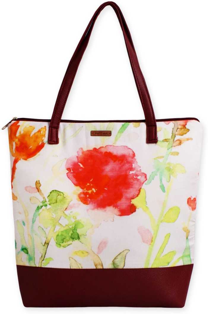 Large rose muti-color printed shoulder bag Multicolor, Red, White, Brown To...