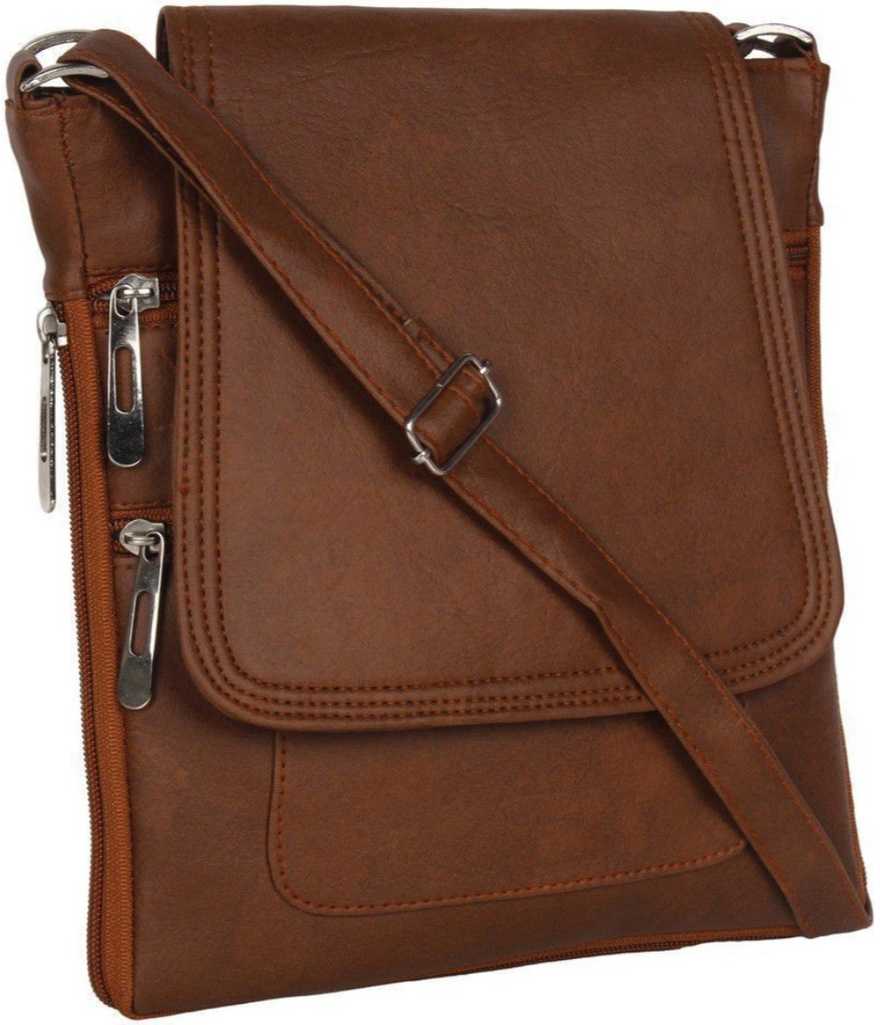 Women Formal Brown PU, Polyester Sling Bag