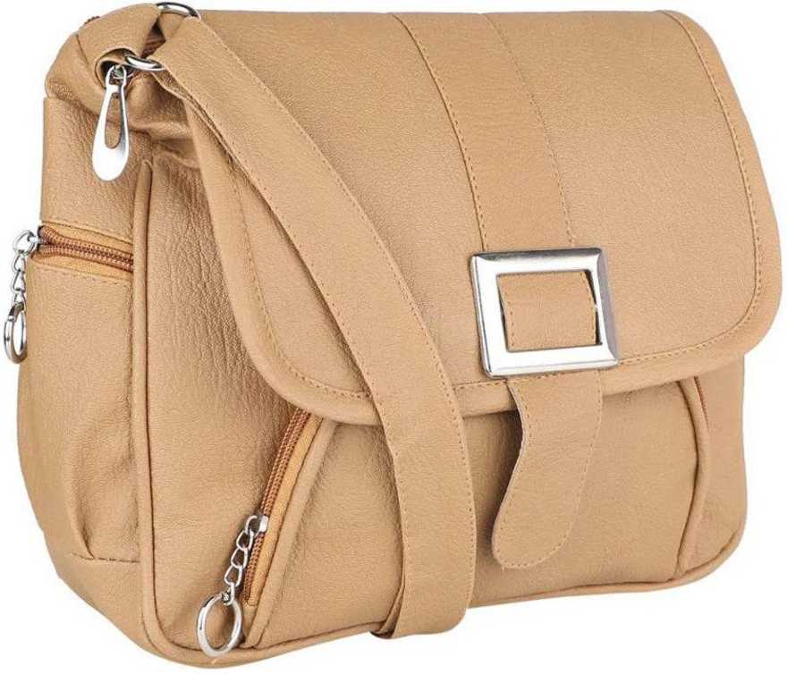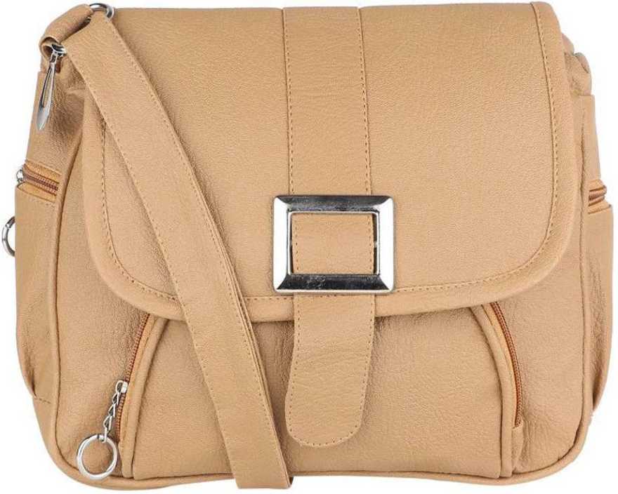 Women Casual Beige Leatherette Sling Bag