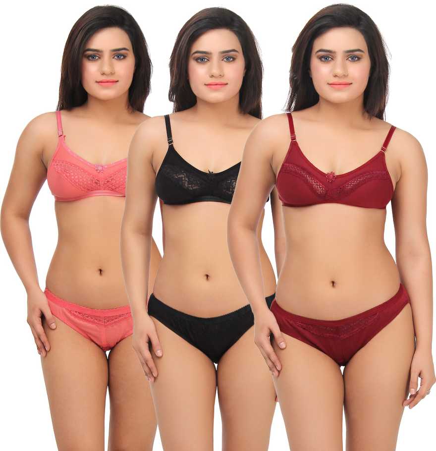 Women Bikini Black, Red, Green Panty (Pack of 3)