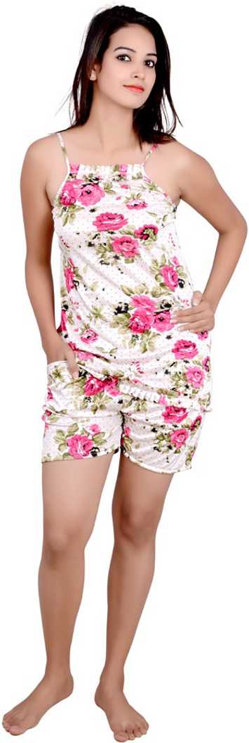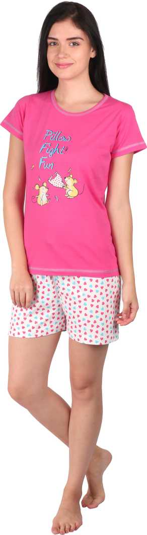Women Printed Pink, White Top & Shorts Set