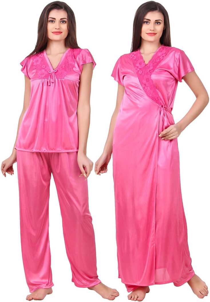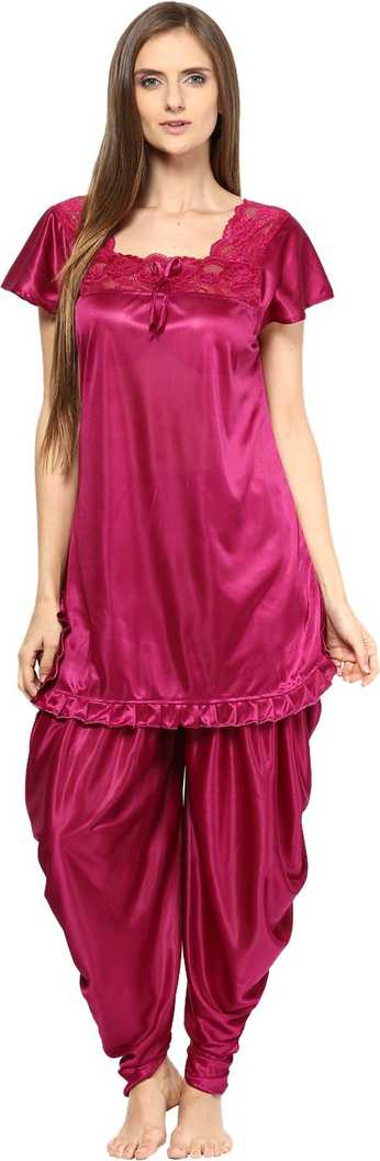 Women Solid Pink Night Suit Set