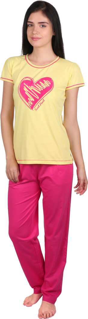 Women Printed Yellow, Pink Top & Pyjama Set
