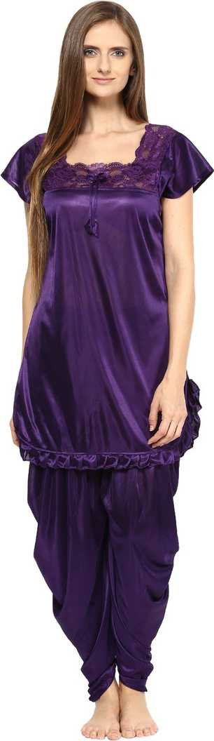 Women Solid Purple Top & Pyjama Set
