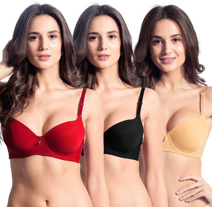 Shyaway Women Push-up Lightly Padded Bra (Black, Beige, Red)