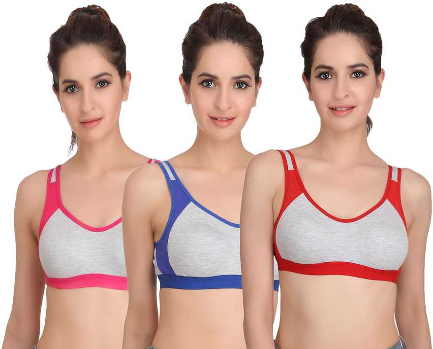 Women, Girls, Girls, Women Sports Non Padded Bra (Pink, Grey)