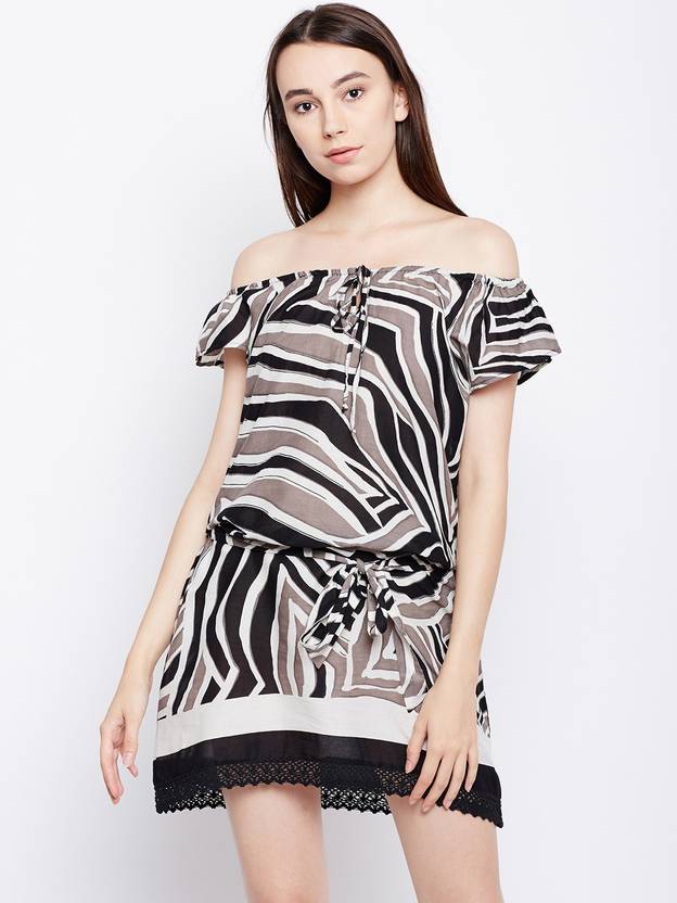 Clovia Padded Striped Swim Top & High Waist Striped Skirt Striped Women Swi...