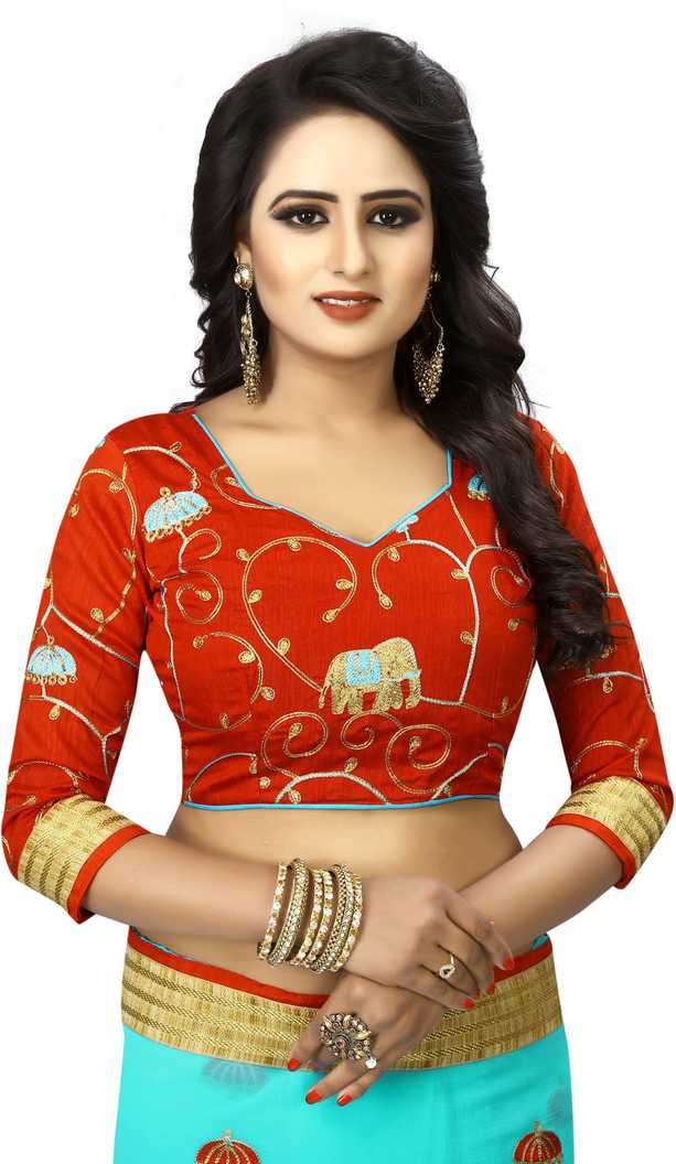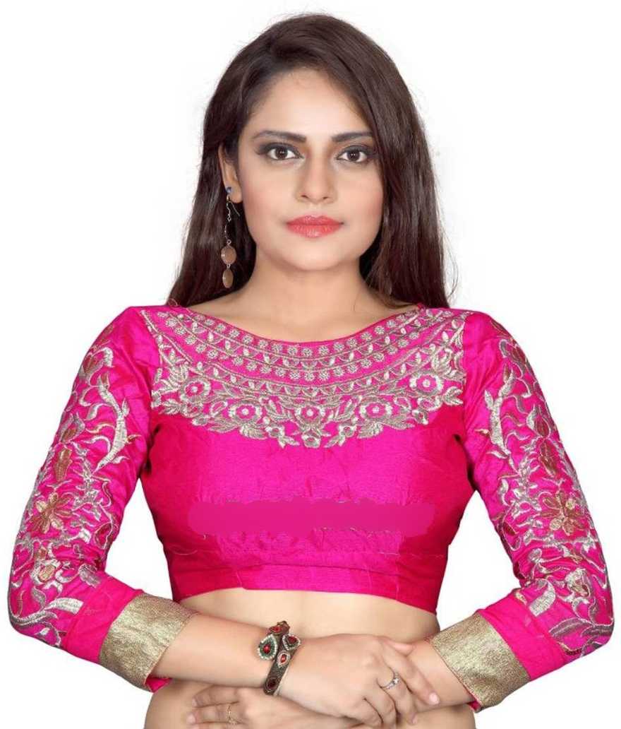 OM DESIGNER Poly Silk Embroidered Blouse Material (Unstitched)