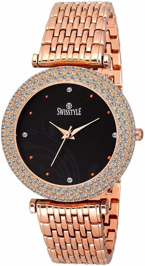 Crystal studded LR075 Black Analog Watch - For Women