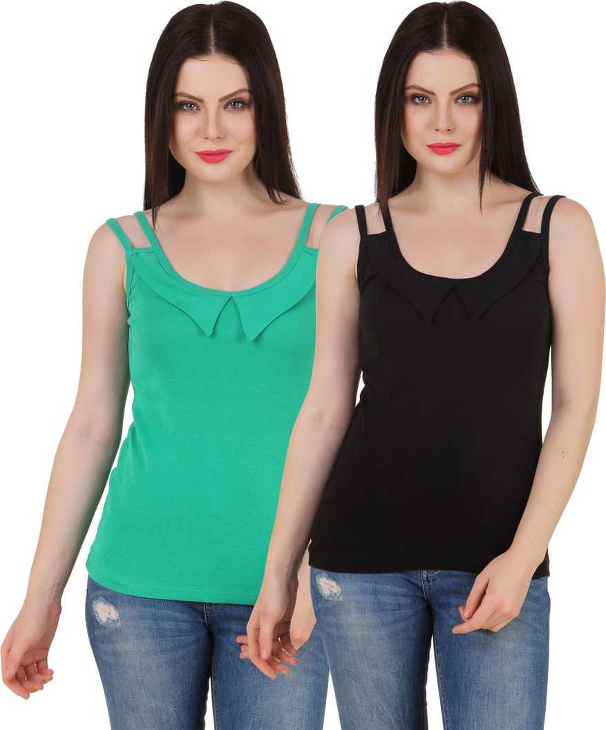 Casual Sleeveless Solid Women Green, Black Top