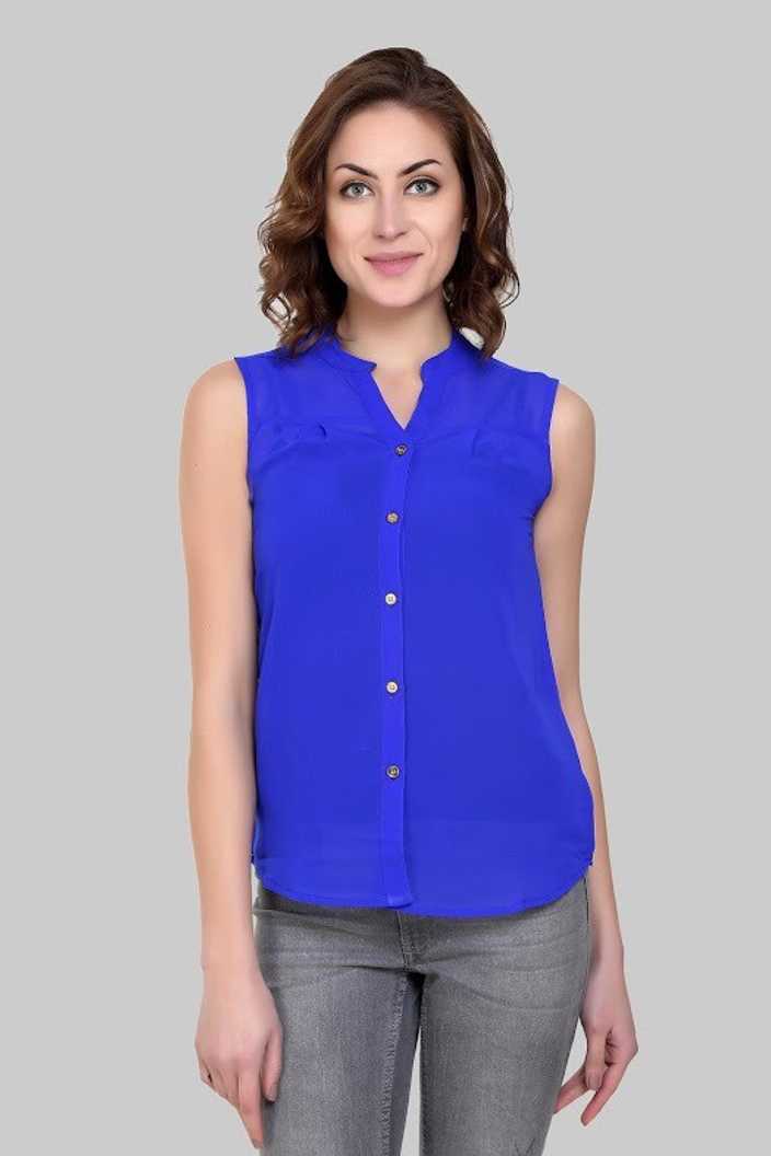 Casual Sleeveless Solid Women Blue Top#JustHere