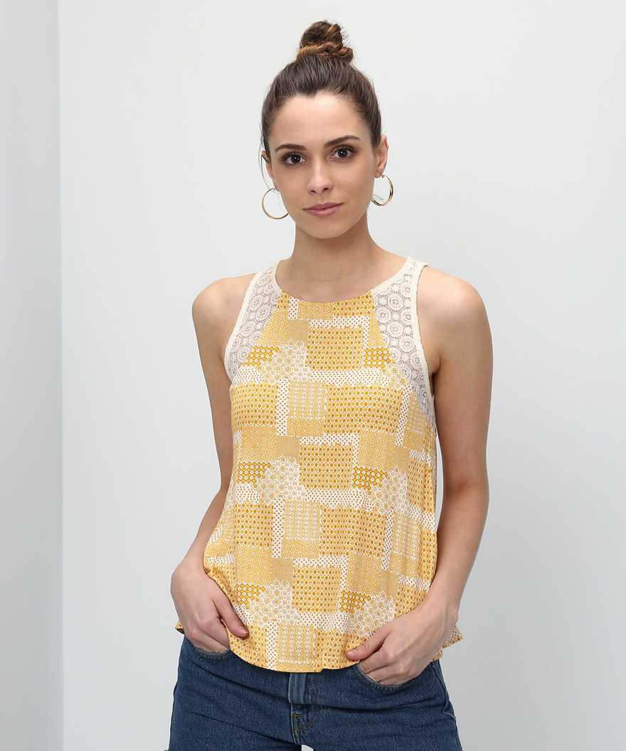 Casual Sleeveless Self Design Women Yellow Top